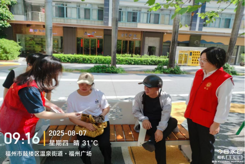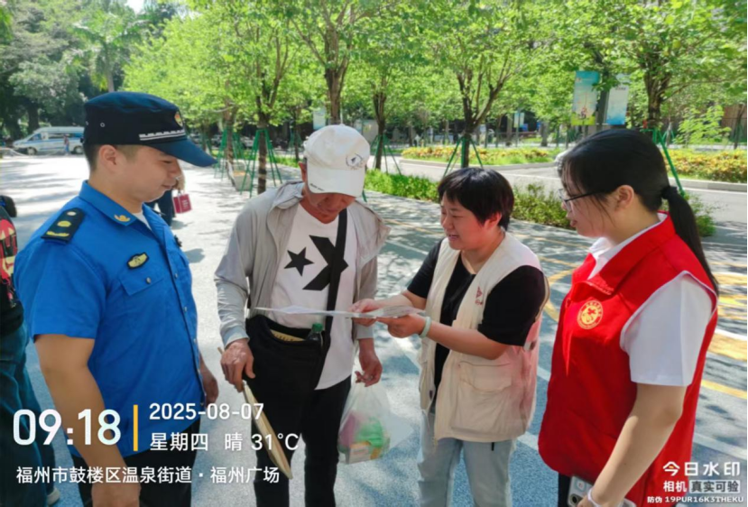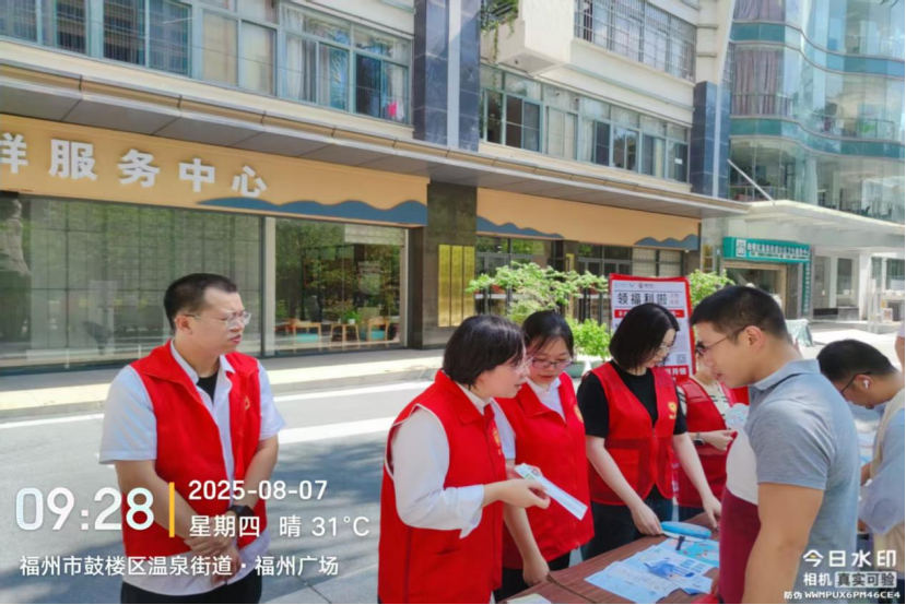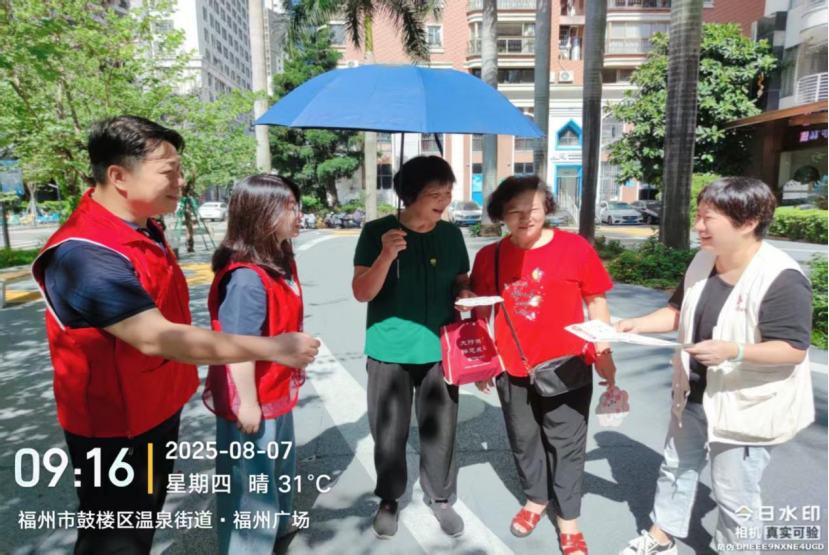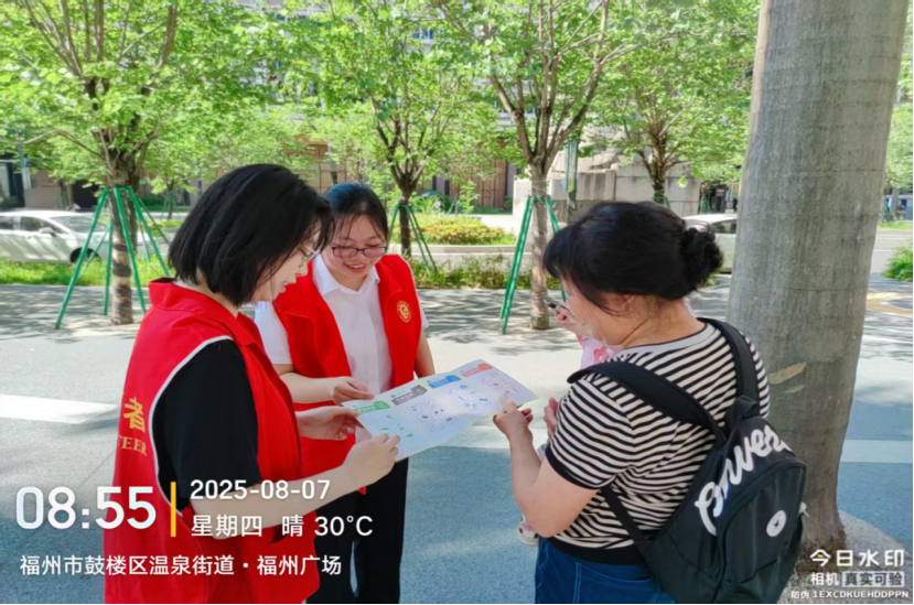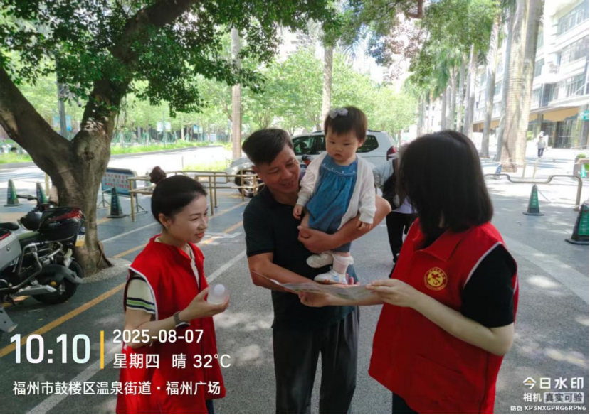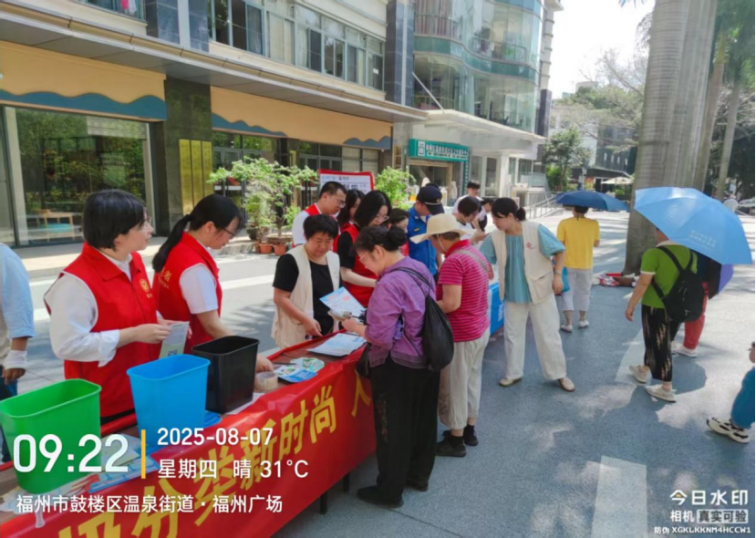 2025年8月7日上午,福州市行政服务中心管委会会同汤边社区在福州广场开展“垃圾分类新时尚 人人参与美榕城”垃圾分类志愿服务宣传活动。中心管委会第三、九、十、十一、十五、十六支部党员志愿者们积极参与该项主题宣传活动,通过现场讲解、参加游戏、发放奖品等多样宣传形式,来提升群众分类意识和水平。